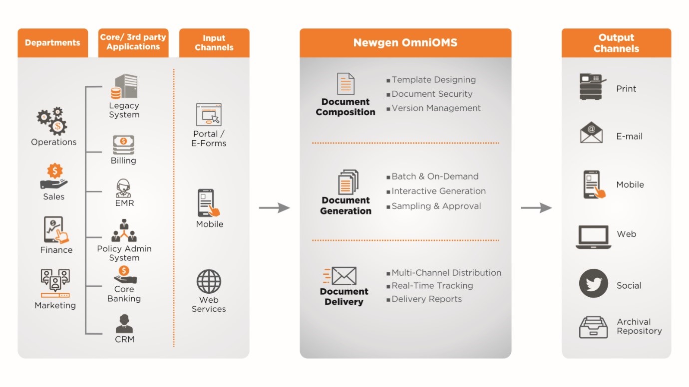 Monitor customer communications at all stages of a customer lifecycle and across all communication channels, from request initiation, creation, generation to distribution